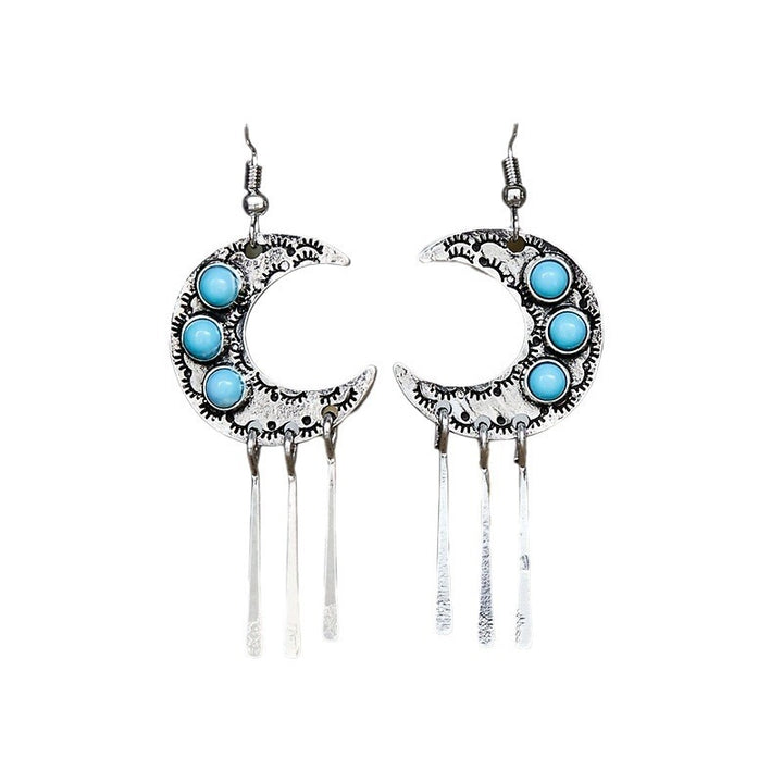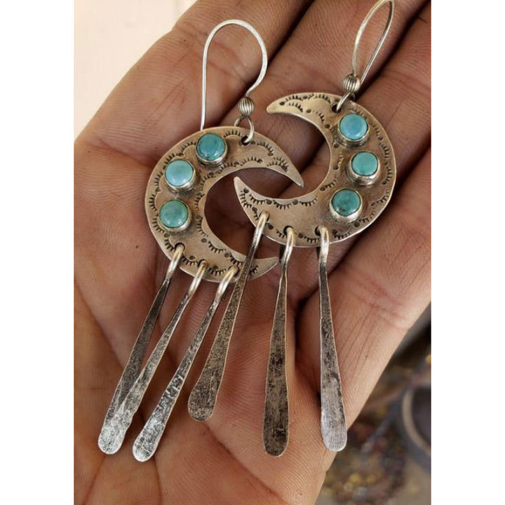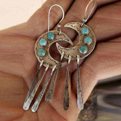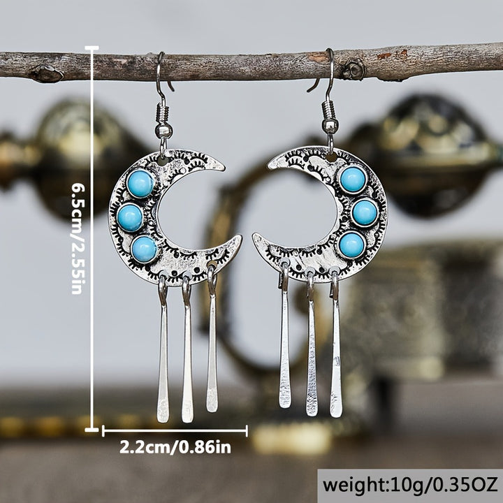 Orecchini pendenti con nappa turchese a forma di luna vintage in stile etnico